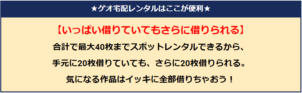 40万以上のDVD・CDを取り扱っている「国内最大級」の宅配DVD・CDレンタルサービス「ゲオ宅配レンタル」!